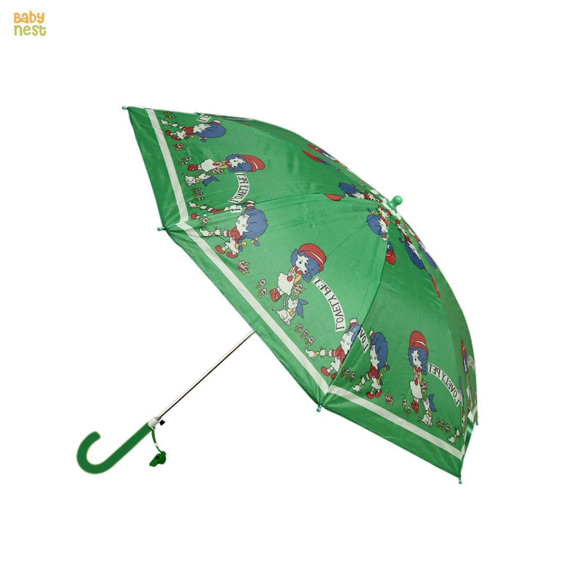 Shield your little one from the rain with this adorable Character Umbrella for Kids in Lovely Pet Green. Perfect for adding some fun to a rainy day, this umbrella features a cute green pet design that will make your child smile. Its compact size is also ideal for easy carrying and storage.