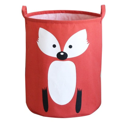 Cute Character Fox Storage Laundry Basket Bin With Handles - Red