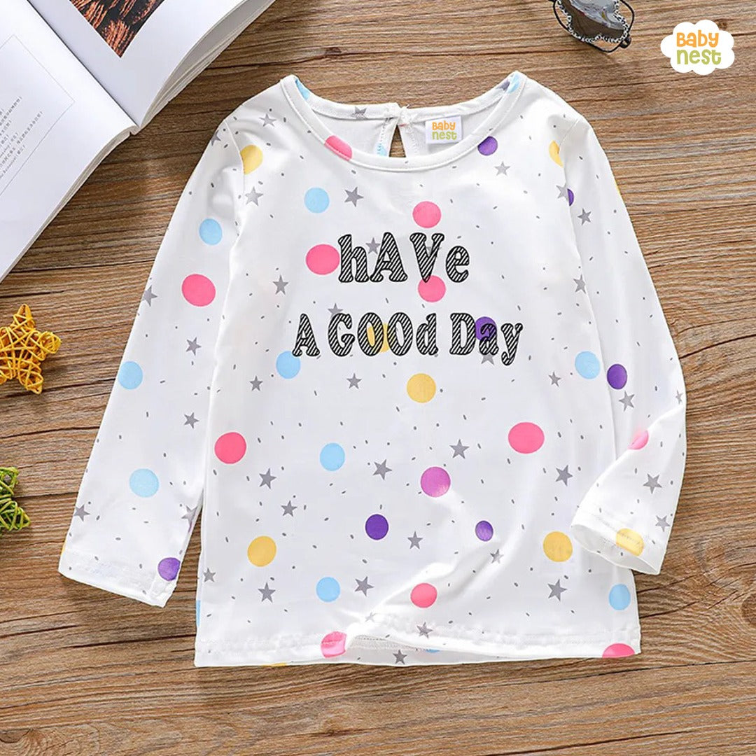 Have a Good Day Printed Polka Dots T-shirt for Girls