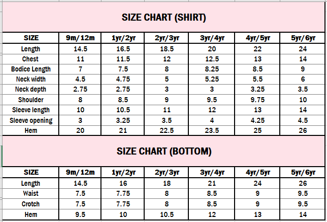 Note: To confirm the sizes please refer to the measurement link available at size chart above