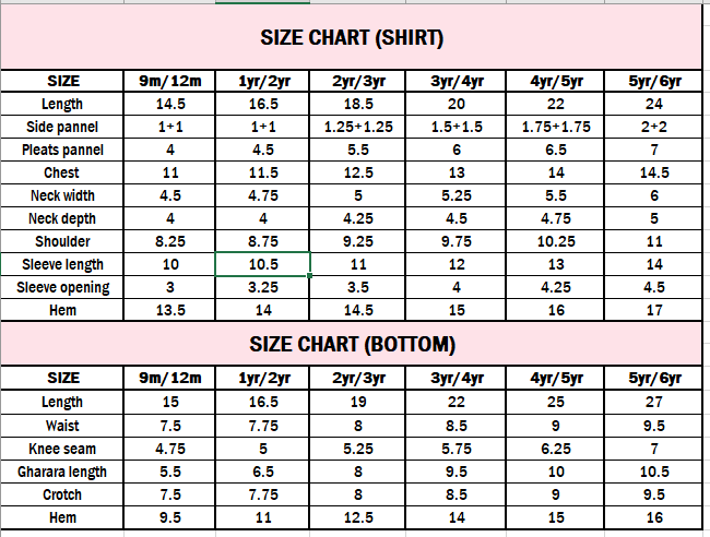 9 months to 6 years, Round Pleated Dori Neckline Shirt Paired with Net Flared Gharara Pants for girls