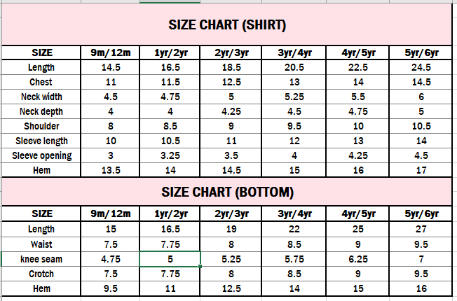 Note: To confirm the sizes please refer to the measurement link available at size chart above
