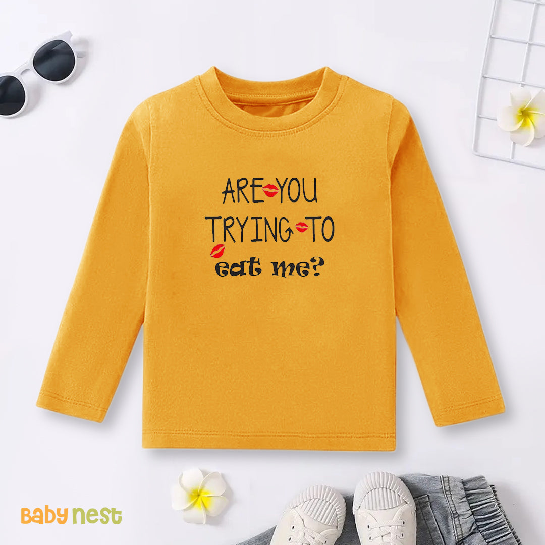 Full Sleeves T-shirt with Are You Trying To Eat Me Print