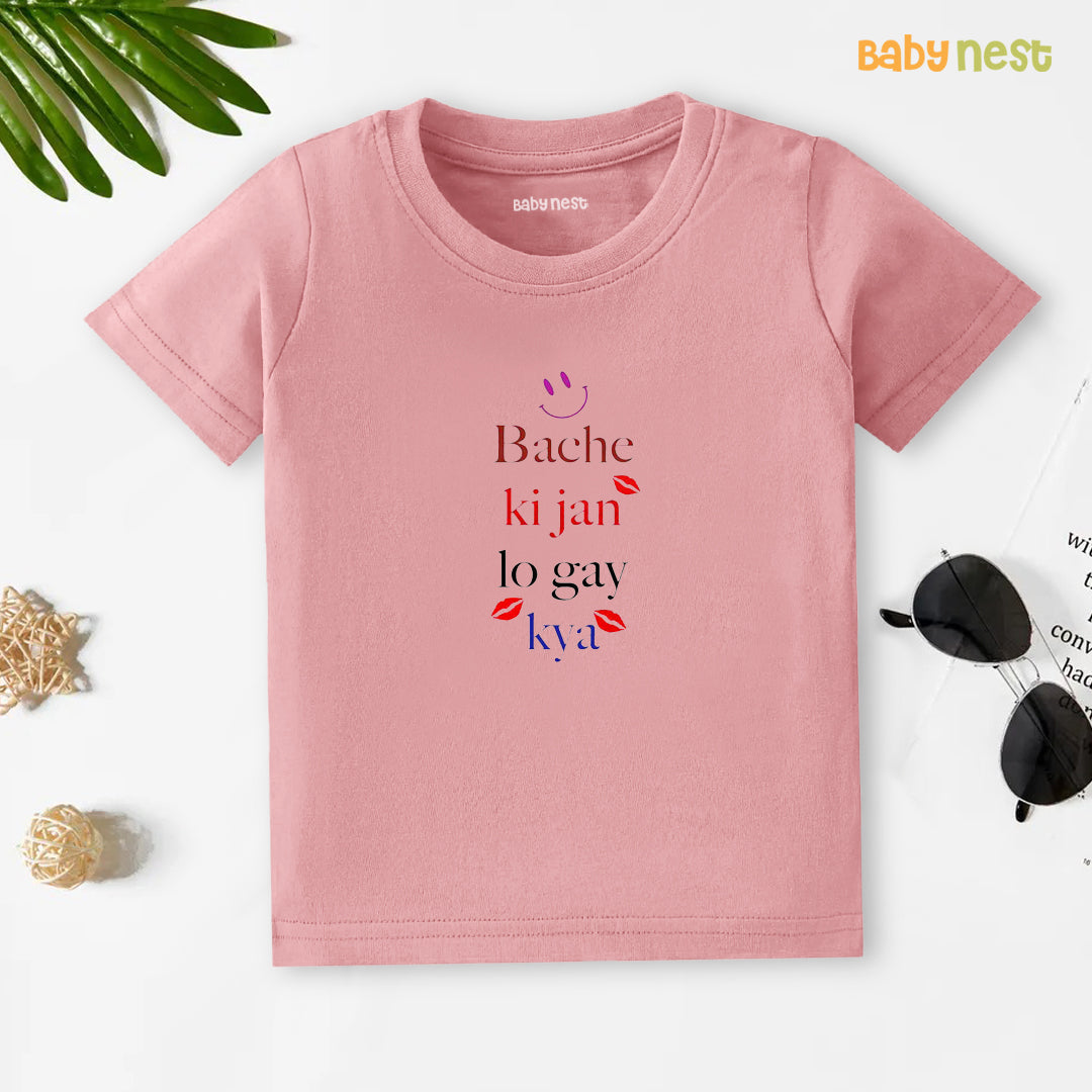 Half Sleeves T-shirt with Bache Ki Jan Lo Gay Kya Print