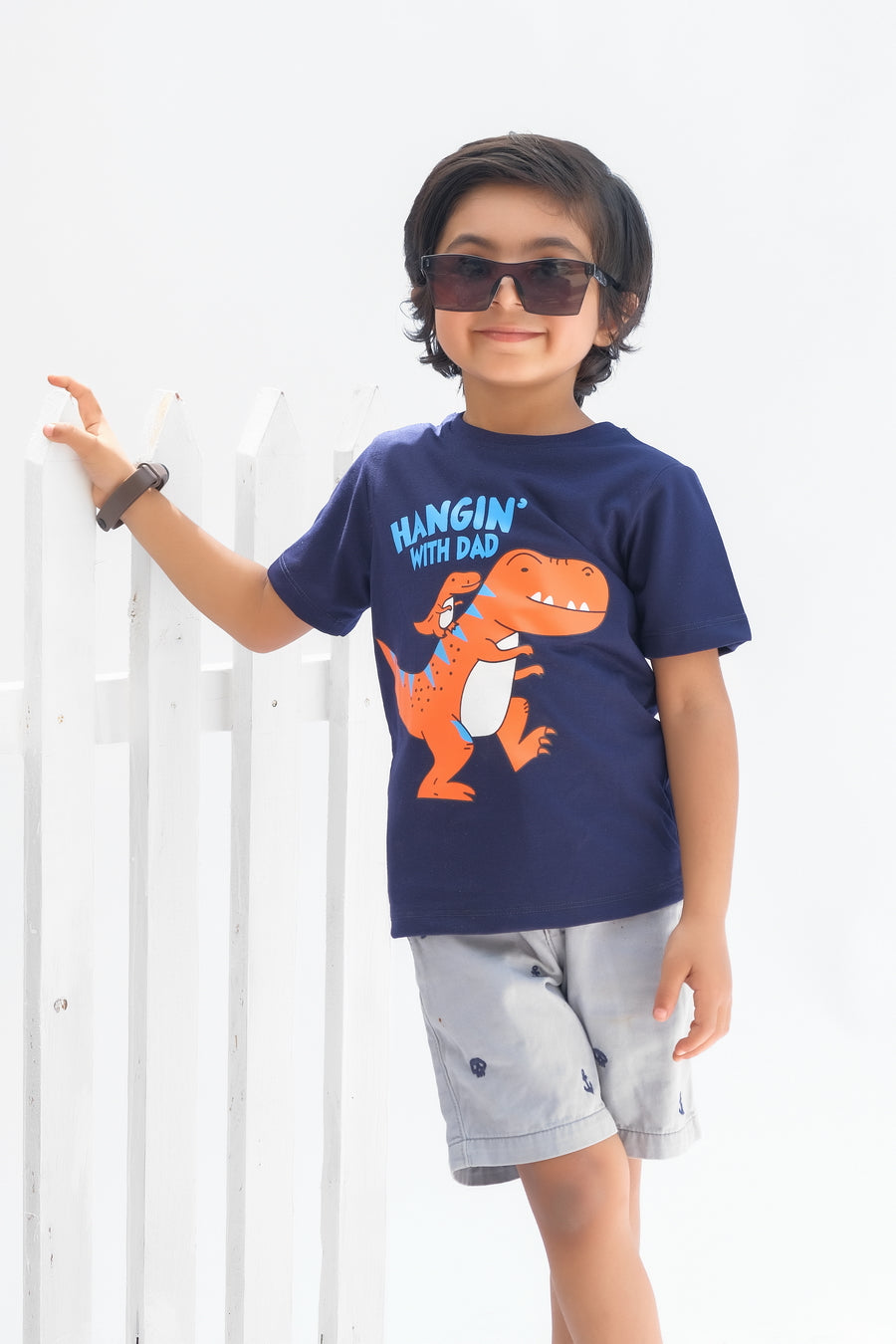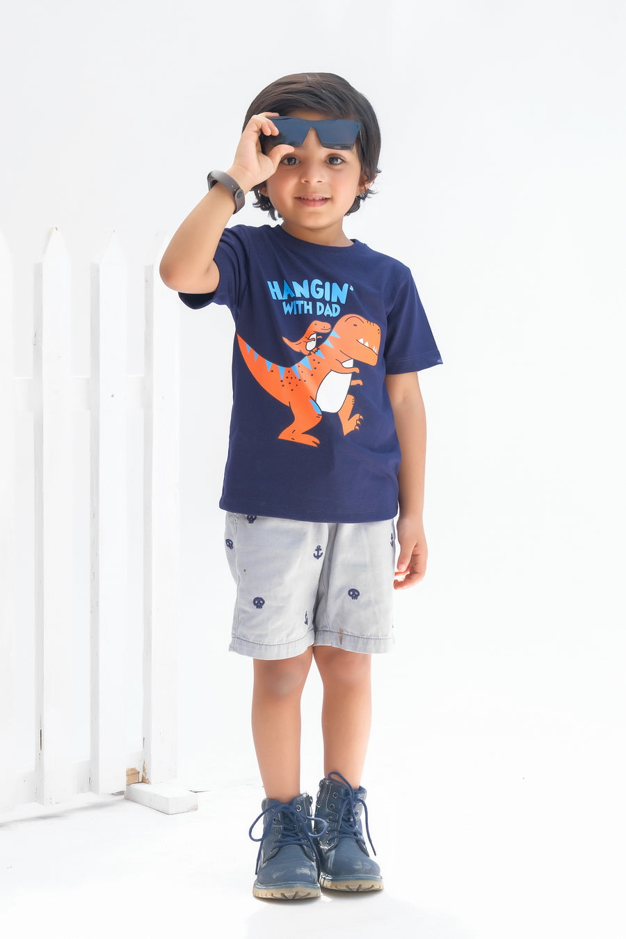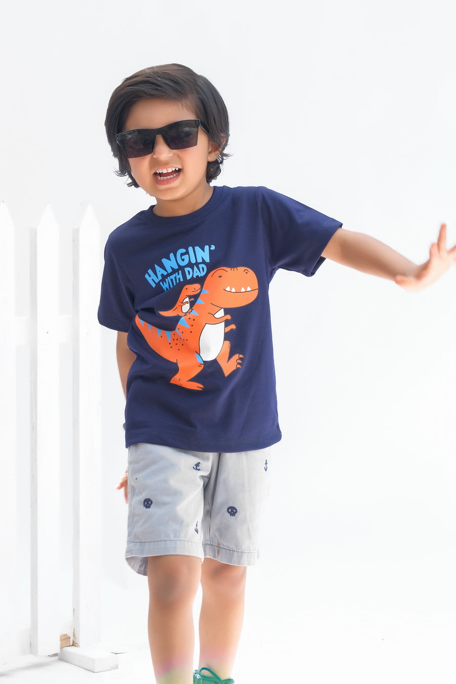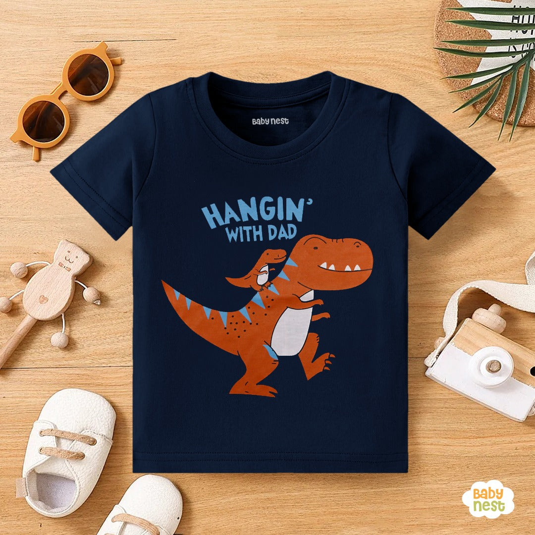 Hanging With Dad - Half Sleeves T-Shirts For Boys- Blue