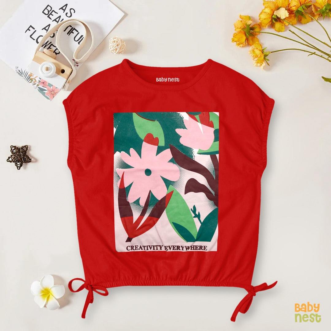 Kimono Print T-Shirt - Creativity Everywhere- Red