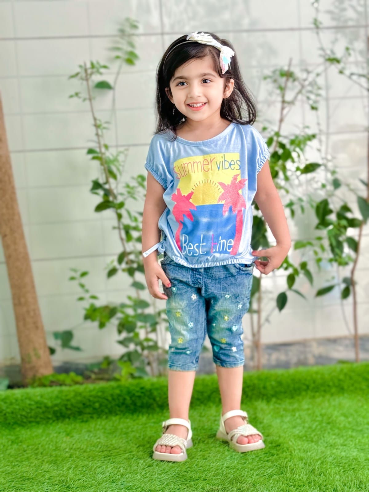 Kimono Print T-Shirt - Summer Vibes Sky Blue