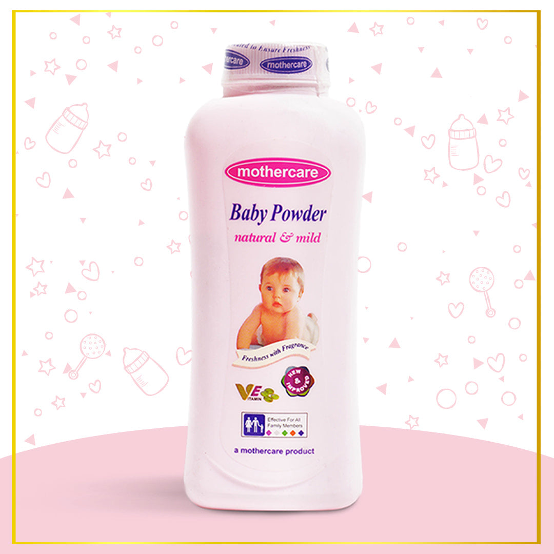 The new & improved Mothercare Baby Powder is delightfully perfumed. Formulated with natural and mild ingredients, its soft and silky touch creates a cool and comforting effect.