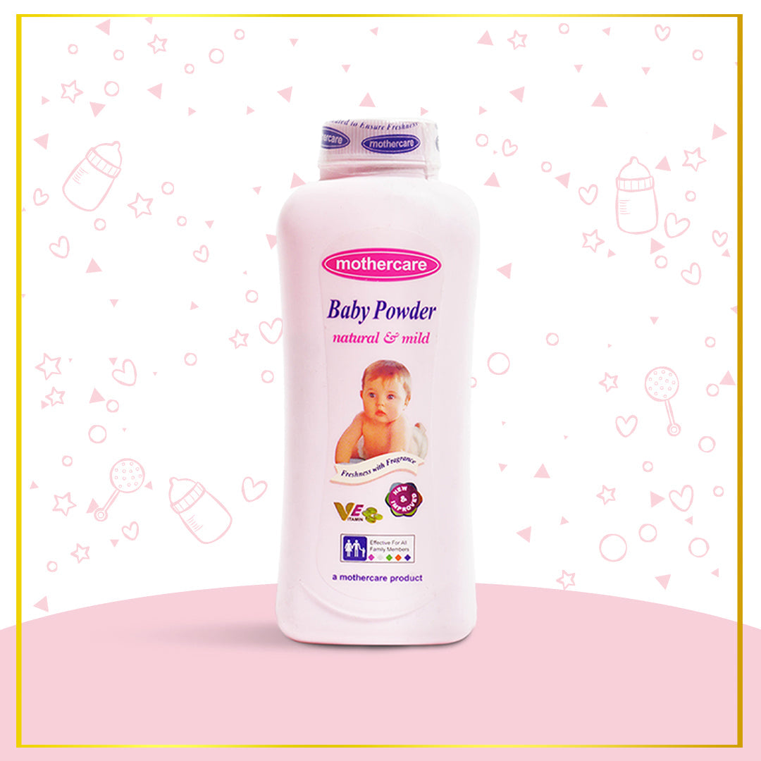 The new & improved Mothercare Baby Powder is delightfully perfumed. Formulated with natural and mild ingredients, its soft and silky touch creates a cool and comforting effect.