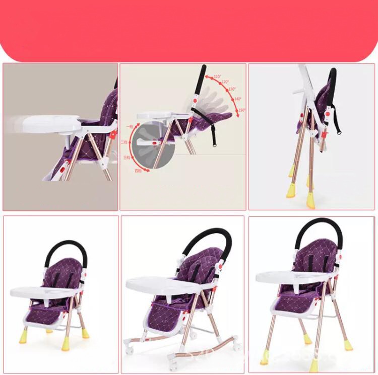 Baby High Chair. This chair Easy to stow and take on the go, this high chair is specially designed to be simple to take along for the ride. Clean up is easy after messy meals thanks to the wipe able seat pad. The high chair folds down quickly for storage out of sight or to pack easily into the car. Whether dining at home or out and about while traveling, the Simple Fold High Chair gives your child a fun place to eat.