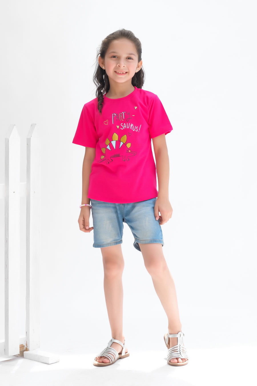 Party Saurus - Half Sleeves T-shirts For Kids - Dark Pink