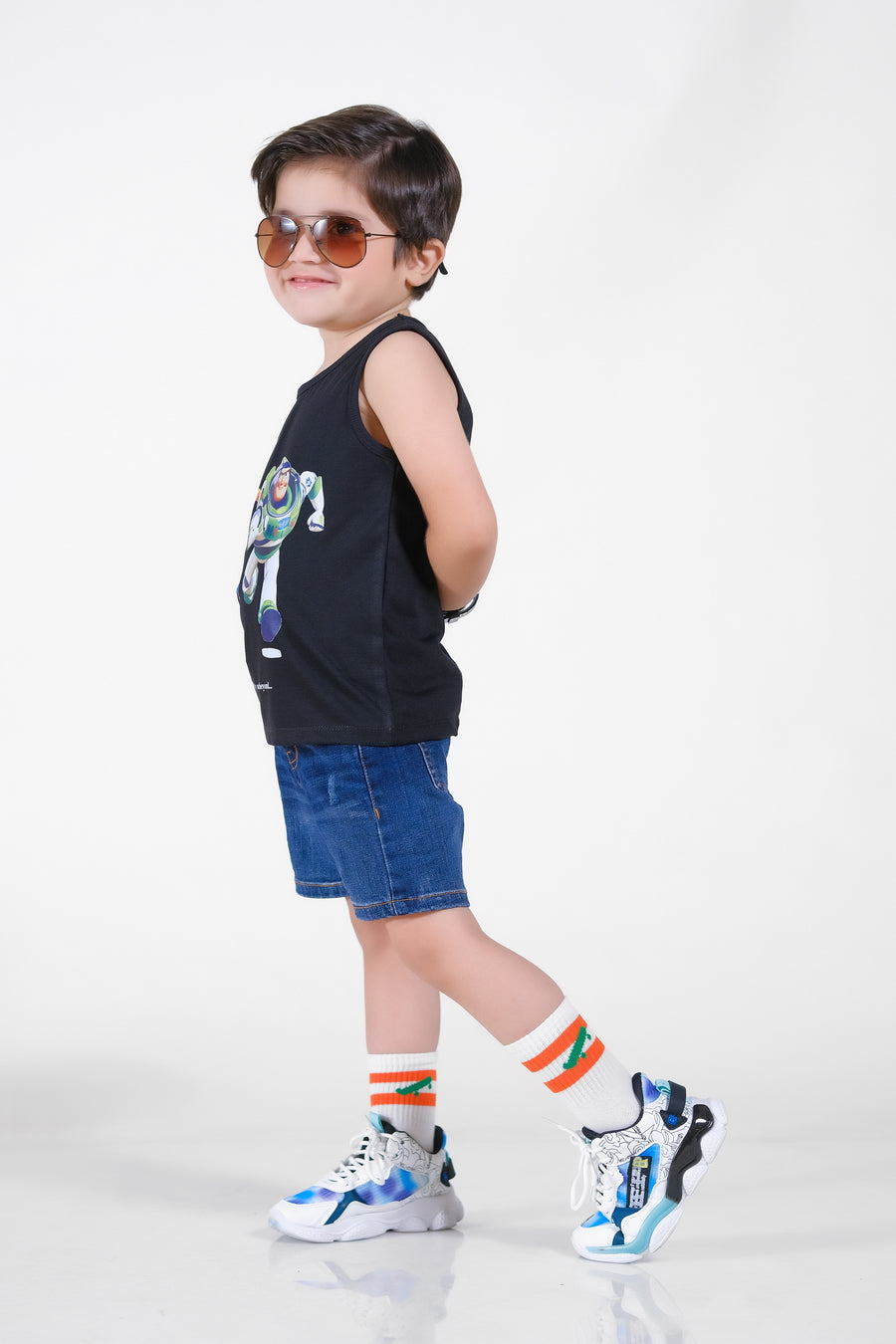 To Infinity and Beyond Printed Sandos for Boys - Black