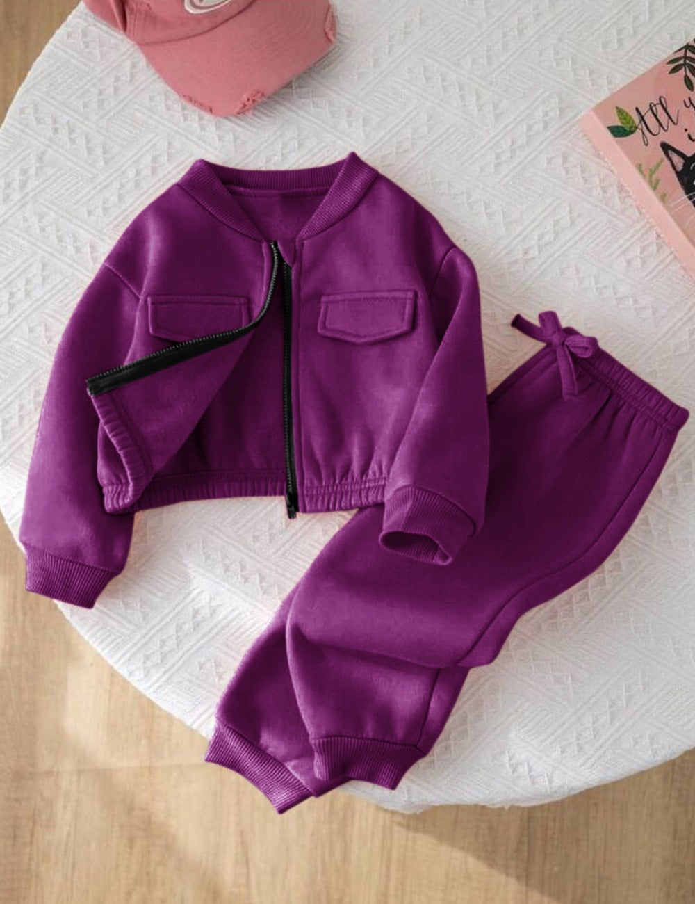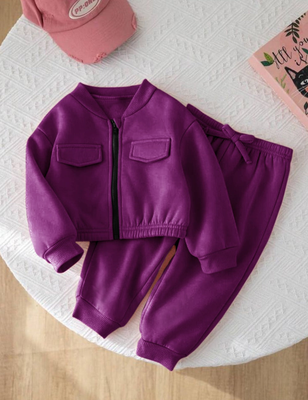 Kid's Mini Zip Tracksuit | Full Sleeve Zip Jacket with Pockets | Winter Activewear for Kids.
