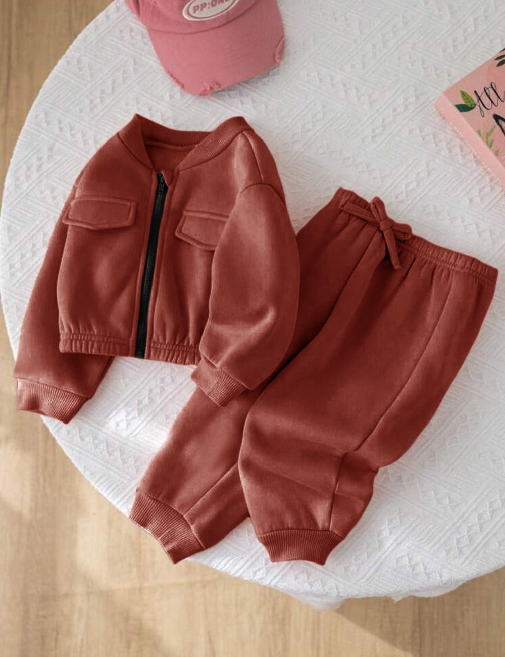 Kid's Mini Zip Tracksuit | Full Sleeve Zip Jacket with Pockets | Winter Activewear for Kids.