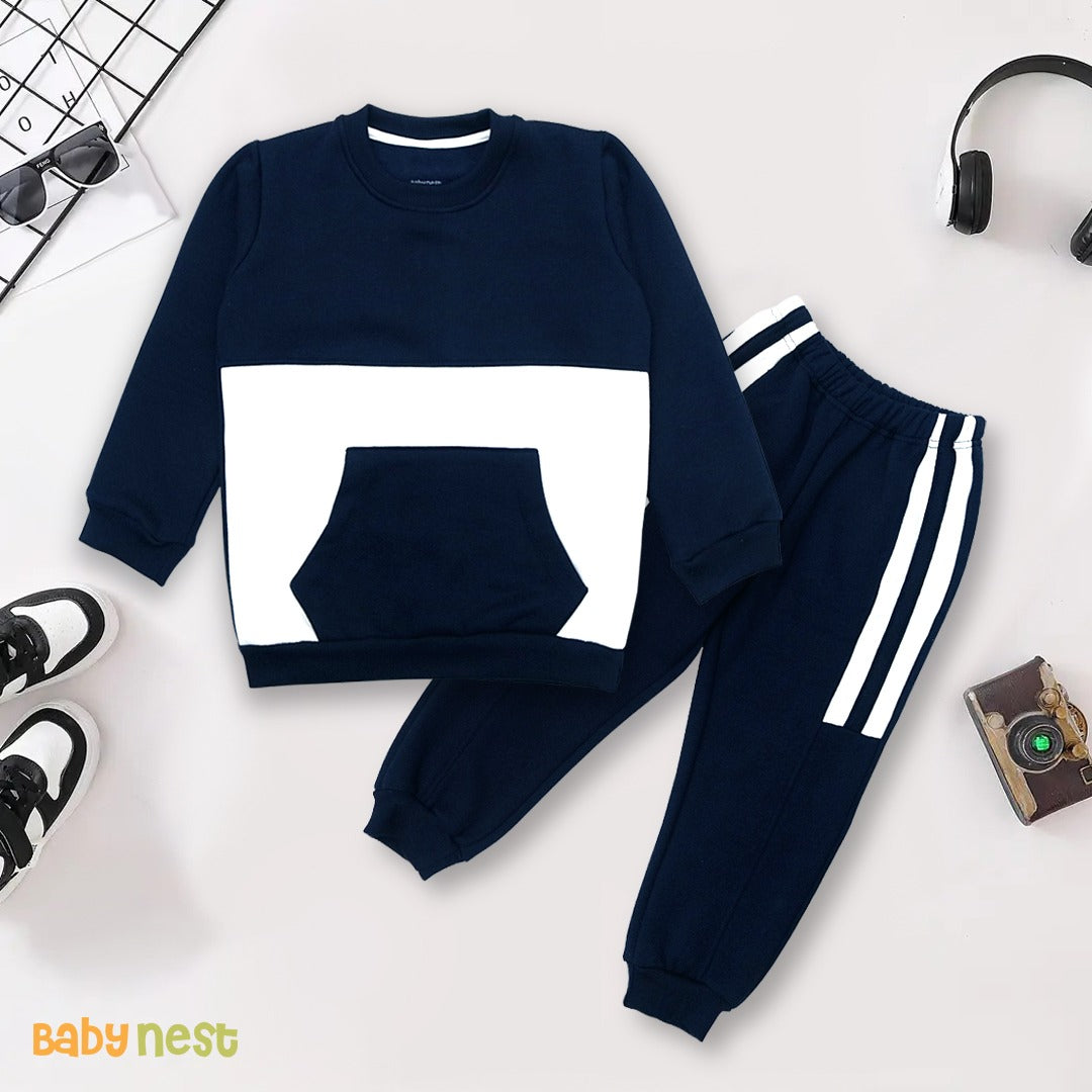 Cozy Cool Tracksuit for Kid | Sporty Style Navy Fleece Tracksuit for Kids