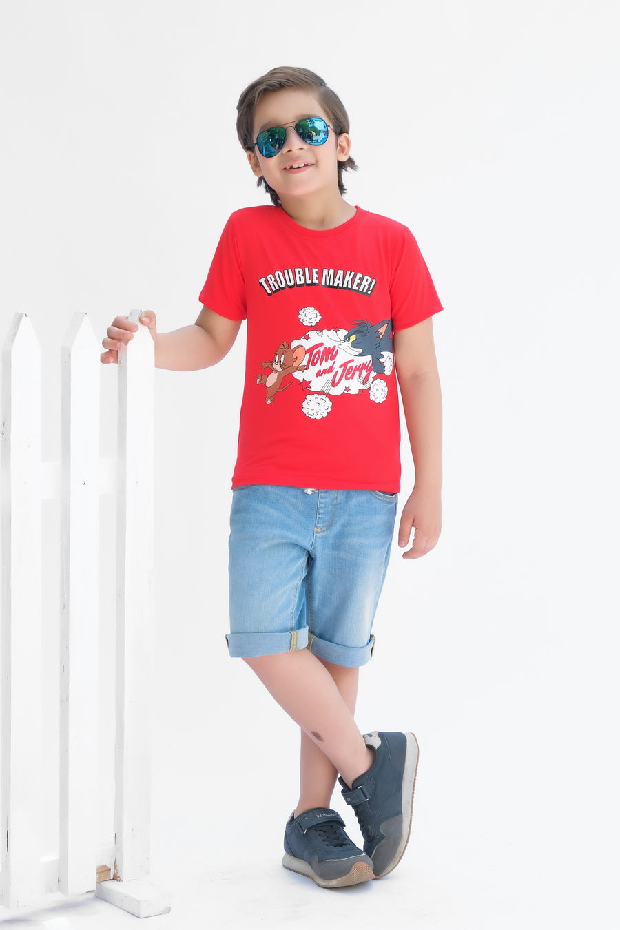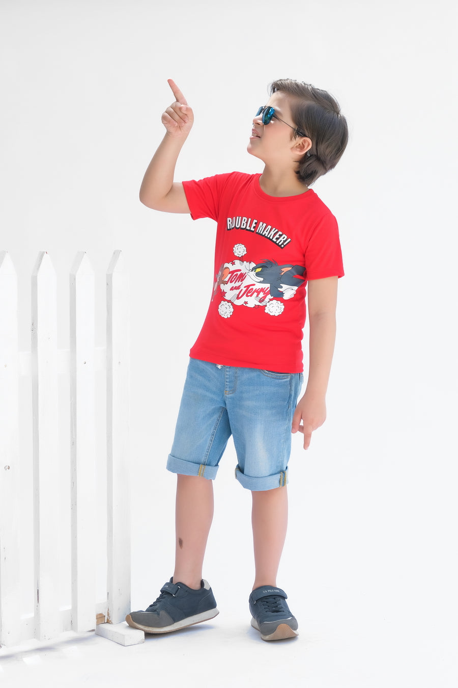 Trouble maker - Half sleeves T-shirts For Kids - Red - SBT-350