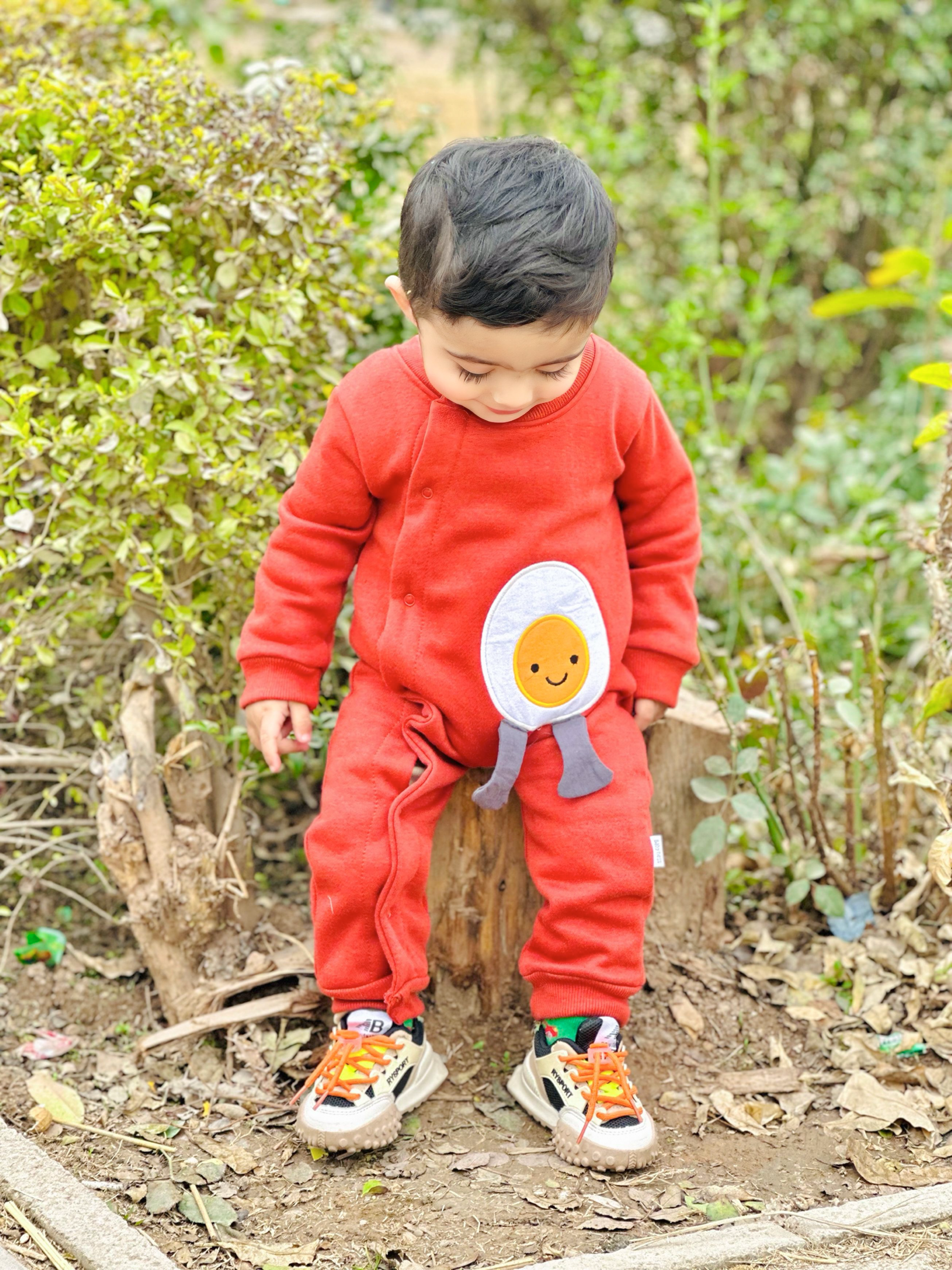 Baby Jumpsuit | Baby Full Romper | Sunny Egg Delight Full Sleeves Baby Jumpsuit - Rust