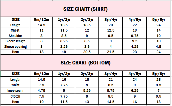 Note: To confirm the sizes please refer to the measurement link available at size chart above