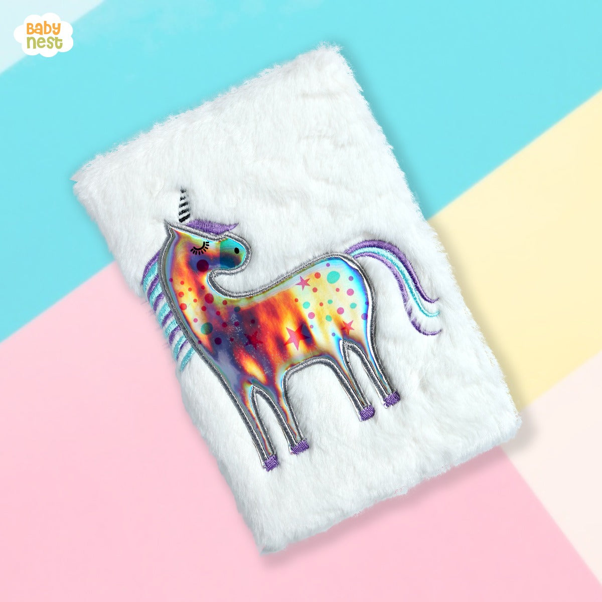 Fluffy Notebook - Look up the term cute in the dictionary and you'd see a picture of this notebook. This notebook is covered in fluff. It contains 180 pages (90 sheets). The unicorn character is embroidered on the book cover. Including two pencils with whale and heart shape on its cap. These pencils shape characters are glittered to give them a shiny look. A special notebook that makes a wonderful gift for little ones.